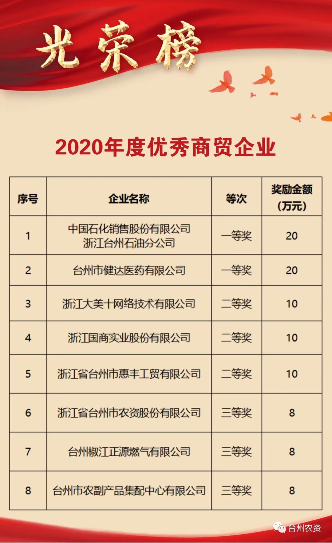 喜報|臺州農(nóng)資榮獲椒江區(qū)2020年度優(yōu)秀商貿(mào)企業(yè)、農(nóng)業(yè)生產(chǎn)綜合發(fā)展獎、新型農(nóng)業(yè)經(jīng)營主體培育獎